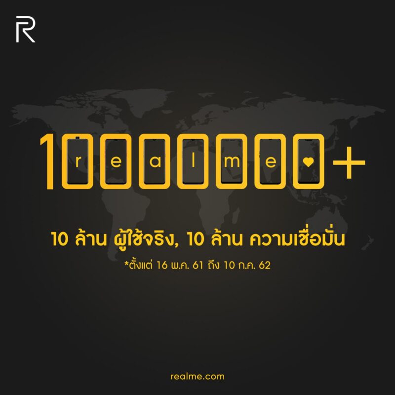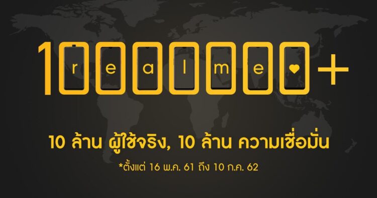 ทะลุ 10 ล้านผู้ใช้ทั่วโลก realme ไม่หยุดพัฒนา สู่การเป็นสมาร์ทโฟน ที่ครองใจคนรุ่นใหม่