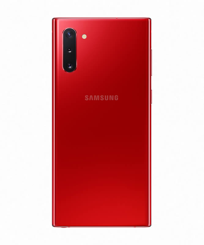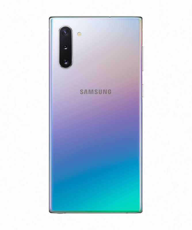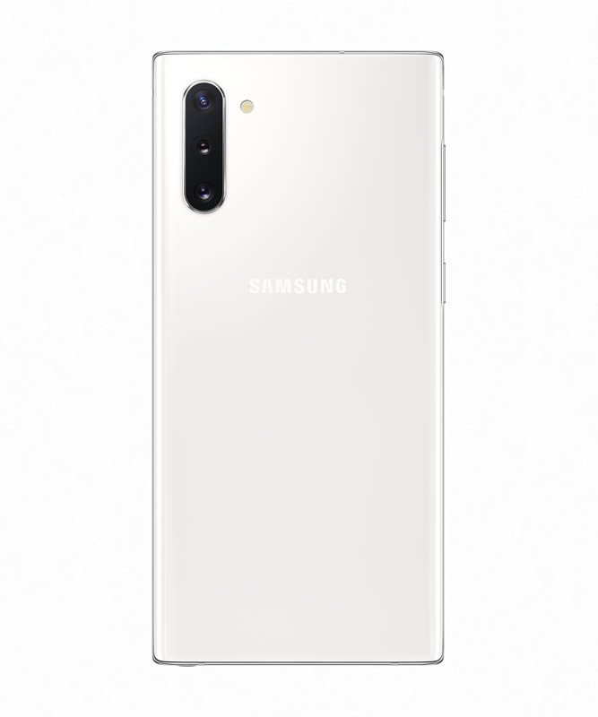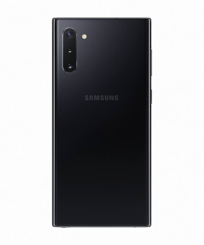 Galaxy Note 10 และ Galaxy Note 10+ มาพร้อมกล้องหลัง 3 ตัว ประกอบด้วย กล้องมุมกว้างพิเศษ 123 องศา ความละเอียด 16 ล้านพิกเซล รูรับแสง F2.2 กล้องหลัก 12 ล้านพิกเซล รูรับแสงปรับได้ระหว่าง F1.5 / F2.4 กล้องเทเลโฟโต้ 12 ล้านพิกเซล รูรับแสง F2.1 ออปติคอลซูม 2 เท่า อย่างไรก็ตาม Galaxy Note 10+ จะได้เซ็นเซอร์ Time of Flight มาช่วยจับระยะชัดลึกให้แม่นยำมากขึ้น