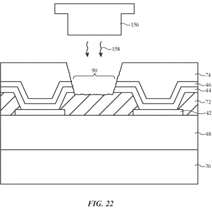 สิทธิบัตร Display with light transmitting windows อธิบายถึงวิธีการใช้วงจรแบบฟิล์มบางเพื่อสร้างแผง OLED พร้อมชั้นแอโนดและแคโทดที่ใช้ในการสร้างวงจรพิกเซล ด้วยวิธีการนี้ Apple จะสามารถติดตั้งอุปกรณ์ไฟฟ้าหลายประเภทไว้ใต้พื้นผิวของจอแสดงผลได้ อย่างเช่นเซ็นเซอร์แสงหรือเซ็นเซอร์ความใกล้เคียง และทำให้เซ็นเซอร์ต่างๆ ตรวจจับวัตถุภายนอกได้ ถึงแม้ผู้ใช้งานอาจมองไม่เห็นตำแหน่งของเซ็นเซอร์ก็ตาม