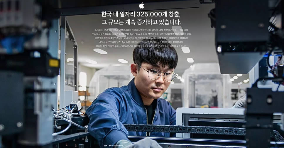 Apple ยังกล่าวว่าได้สร้างงานให้ชาวเกาหลีใต้กว่า 325,000 ตำแหน่ง ซึ่งส่วนใหญ่อยู่ในธุรกิจผู้ผลิตซอฟต์แวร์อิสระ