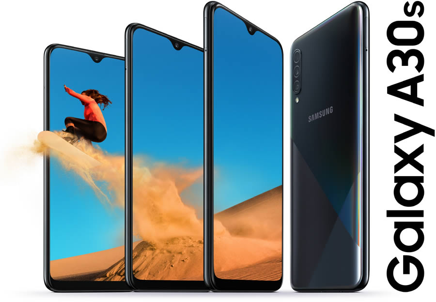 Samsung เปิดตัวสมาร์ทโฟน Galaxy A30s และ Galaxy A50s อย่างทางการ โดยทั้งคู่มีส่วนคล้ายกันที่กล้องหลัง 3 ตัว จอแสดงผล ขนาด 6.4 นิ้ว แต่มีรอยบากไม่เหมือนกัน เพราะ Galaxy A30s ใช้จอแสดงผล Infinity-V Display ส่วน Galaxy A50s ใช้จอแสดงผล Infinity-U Display