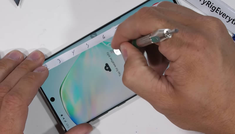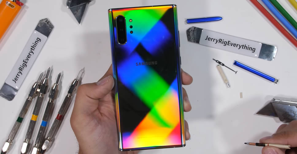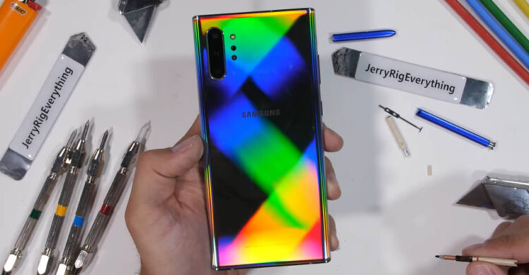 Zack Nelson เจ้าของช่อง JerryRigEverything ใน YouTube ได้นำพรีเมี่ยมสมาร์ทโฟน Samsung Galaxy Note 10+ (เวอร์ชั่น 5G) มาทดสอบความทนทานแล้ว ตามมาตรฐานเดียวกับสมาร์ทโฟนรุ่นอื่นๆ ที่เคยทดสอบไปก่อนหน้านี้ ซึ่งมีทั้งการใช้มีดมาขีดข่วน ทดสอบความทนทานของจอแสดงผล ความแข็งแรงของบอดี้ และยังทดสอบ S Pen ด้วย