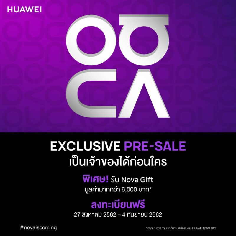 จอง HUAWEI nova 5T ตั้งแต่ 27 สิงหาคม – 4 กันยายนนี้ นอกจากจะได้รับเครื่องก่อนใครในประเทศไทยแล้ว 1,000 ท่านแรกที่ลงทะเบียนจองสิทธิ์การซื้อและมารับโทรศัพท์ภายในงาน HUAWEI nova 5T Day Exclusive Pre-Sale ณ ลานทางเชื่อมBTS Siam Square One ในวันที่15 กันยายน เวลา 10.00 น. – 20.00 น. จะได้รับ nova Gift สุดพิเศษประกอบด้วย ลำโพงคู่HUAWEI Mini Speaker, หูฟัง HUAWEI FreeLace และคูปองส่วนลดต่างๆ จาก nova 5T รวมมูลค่ากว่า 6,000 บาท