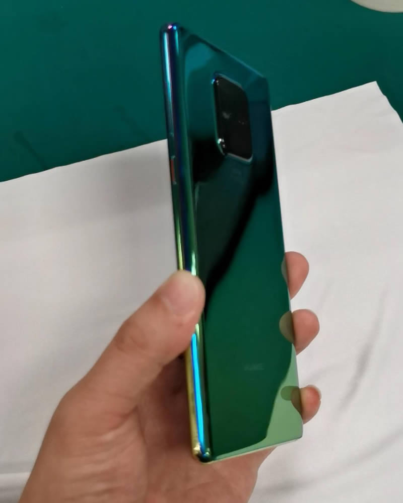 ภาพหลุด Huawei Mate 30 เครื่องจริง (หรือเครื่องดัมมี่) มีดีไซน์กล้องหลังคล้ายกับ Mate 20 Pro แต่มีกรอบกันชนขนาดใหญ่กว่า เพราะมาพร้อมกล้องหลัง 4 ตัว แต่ไม่มีข้อมูลว่า จะใช้สเปกกล้องเดียวกับ Mate 30 Pro หรือไม่
