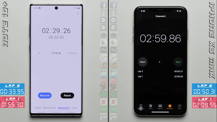 เราเคยเห็น David Rahimi เจ้าของช่อง PhoneBuff นำ Samsung Galaxy Note 10+ มาทดสอบ Drop Test พร้อมเปรียบเทียบกับ iPhone XS Max มาแล้ว ตามที่เราได้นำเสนอไปก่อนหน้านี้ ล่าสุด David Rahimi ได้นำสมาร์ทโฟนทั้งสองรุ่น มาเปรียบเทียบกันอีกครั้ง แต่เป็นด้านความเร็ว