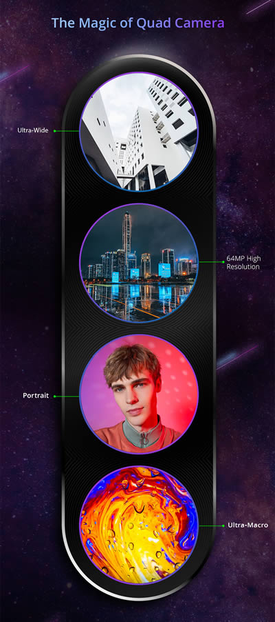 ระบบกล้องหลังของ realme XT นอกจากจะมีกล้องหลัก 64 ล้านพิกเซล จะประกอบไปด้วยกล้องมุมกว้างพิเศษ, กล้องช่วยถ่ายภาพบุคคล และ กล้องถ่ายภาพระยะใกล้ แต่ยังไม่ได้เปิดเผยความละเอียดออกมา