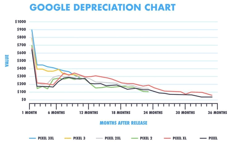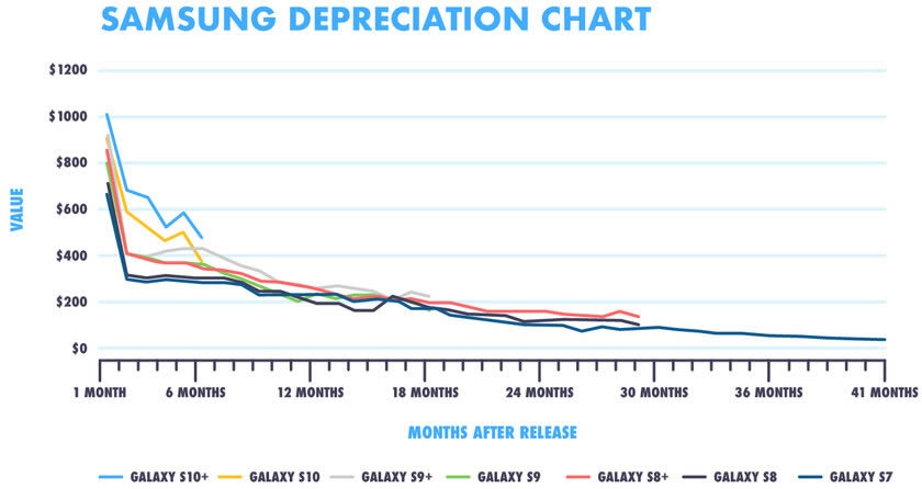 อย่างไรก็ตาม มูลค่าของสมาร์ทโฟน Android ลดลงยิ่งกว่า อย่าง Samsung Galaxy S10 มีมูลค่าลดลง 57% หลังจากเปิดตัวไป 6 เดือน และ Galaxy S10+ มีมูลค่าลดลง 52% ขณะที่ Pixel 3 XL ที่ออกมาในเดือนตุลาคม 2018 มีมูลค่าลดลงไป 58% จากที่เคยซื้อมาเกือบ 900 ดอลล่าร์สหรัฐ ตอนนี้สามารถขายได้เพียง 300 ดอลล่าร์สหรัฐ หรือราว 9,200 บาท