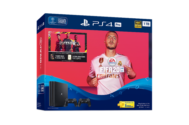 | Bundle Content | PlayStation®4 Pro (Jet Black, 1 TB HDD) x 1DUALSHOCK®4 wireless controller x 2PS4™ FIFA 20 Standard Edition Blu-ray Disc x 1Bonus Content:FUT 20 Rare Gold Player Pack redemption voucher card3 ICON Loan Players for 5 GamesPlayStation®4 One-Year extended warranty servicePlayStation®Plus 3-month subscription voucher card x 1(Valid until 20th September 2020) |