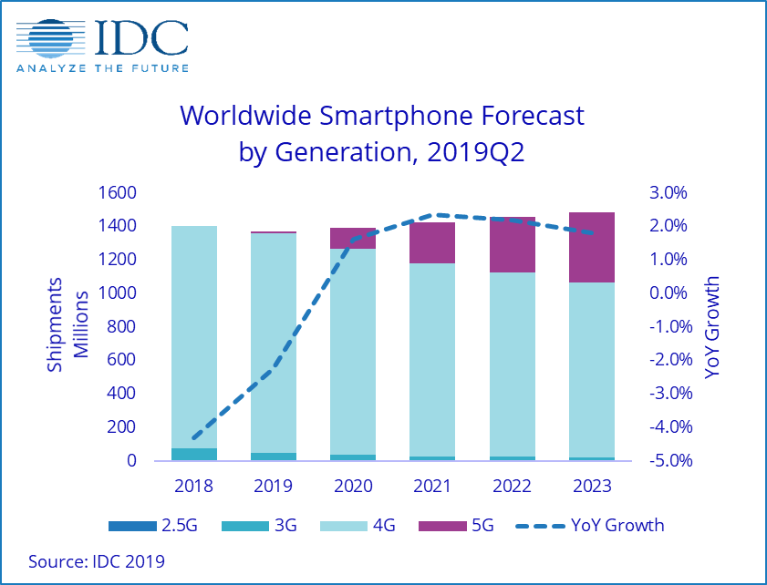 ในปีหน้า IDC เชื่อว่าสมาร์ทโฟน 5G จะมียอดจัดส่ง 8.9% จากยอดจัดส่งสมาร์ทโฟนทั้งหมด หรือคิดเป็น 123.5 ล้านเครื่อง และคาดว่าจะเพิ่มขึ้นถึง 28.1% ในปี 2023