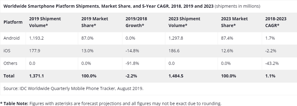 IDC (International Data Corporation) ออกมาคาดการณ์ยอดจัดส่งสมาร์ทโฟนในช่วงครึ่งหลังของปี 2019 และเริ่มเข้าสู่ปี 2020 โดยแบ่งสมาร์ทโฟนออกเป็น 2 กลุ่ม ตามระบบปฏิบัติการ สำหรับ iPhone จะพบกับความท้าทายในปีนี้ จากการขาดเทคโนโลยี 5G