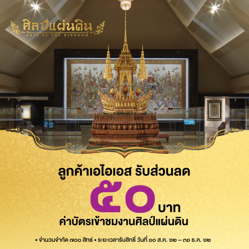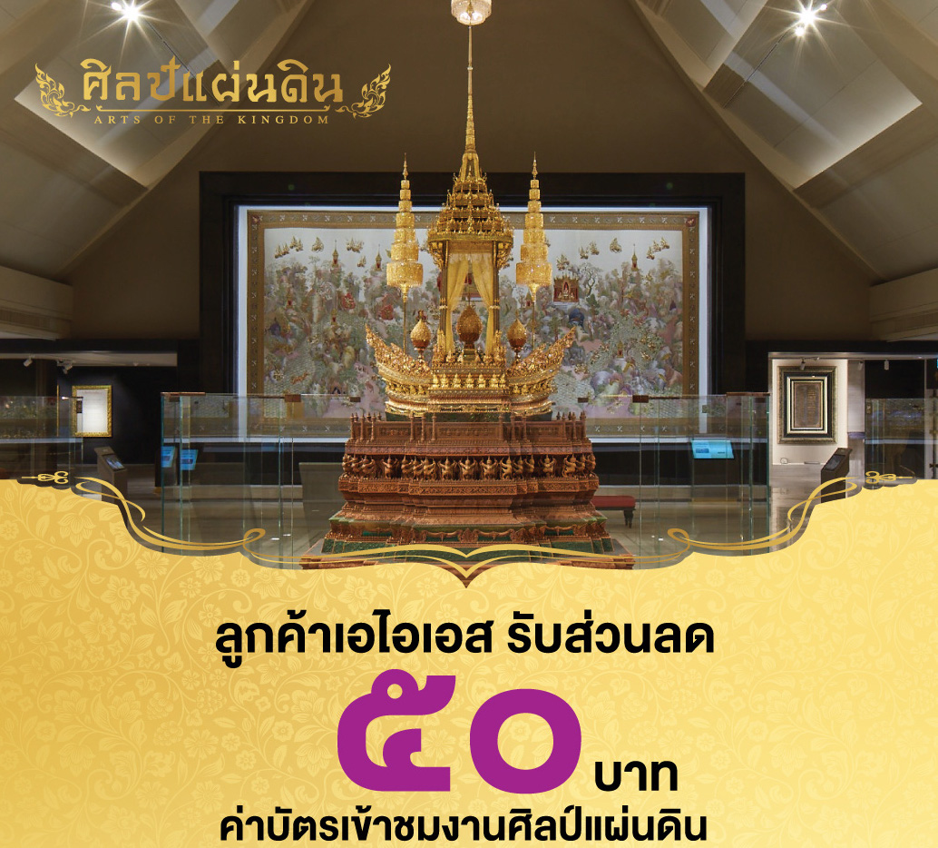 เอไอเอส ร่วมเปิดประสบการณ์ใหม่ให้ลูกค้าได้เรียนรู้ประวัติศาสตร์และร่วมสืบสานมรดกทางศิลปวัฒนธรรมอันวิจิตรงดงาม ผ่านผลงาน“ศิลป์แผ่นดิน” งานหัตถศิลป์ชั้นสูงที่หาชมยาก โดยช่างฝีมือคนไทยจากสถาบันสิริกิติ์ สวนจิตรลดา มูลนิธิส่งเสริมศิลปาชีพ ในสมเด็จ