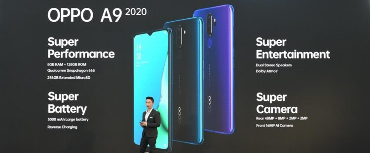 OPPO ผู้นำตลาดสมาร์ทโฟน เปิดตัว “OPPO A9 2020” สเปคแรงสุดในสมาร์ทโฟนระดับเดียวกัน และถือเป็นจุดเริ่มต้นใหม่ของ ซีรีส์ A ด้วยสุดยอดสเปคเพื่อความบันเทิงทุกรูปแบบ ทั้งเล่นเกม ดูหนัง ฟังเพลงได้ “เร็ว-แรง-ลื่น สุดๆ” ด้วย RAM 8GB, ROM 128GB พร้อมแบตเตอรี่ 5,000 mAh ลำโพงสเตอริโอแบบคู่ และระบบเสียง DOLBY ATMOS® เพื่อให้ประสบการณ์เสียงที่สมจริง และสนุกกับการถ่ายภาพด้วยกล้องหลัง 4 ตัว ความละเอียดสูงสุด 48MP ในราคาเพียง 8,990 บาท เปิดจองตั้งแต่ 16-27 กันยายนนี้ พร้อมรับ Smart Bag มูลค่า 1,590 บาท พร้อมรับข้อเสนอพิเศษ เริ่มเพียง 3,990 บาท* เมื่อซื้อพร้อมแพ็คเกจกับผู้ให้บริการเครือข่ายที่ร่วมรายการ ทั้ง AIS, dtac และ True Move H โดยจะวางจำหน่ายวันแรกที่ OPPO Brand Shop ทุกสาขาและตัวแทนจำหน่ายทั่วประเทศ สามารถสัมผัสของจริงและเป็นเจ้าของ OPPO A9 2020 ได้ในวันที่ 28 กันยายนเป็นต้นไป