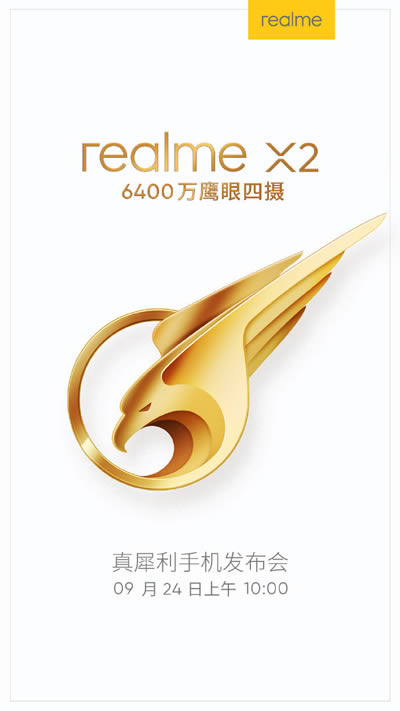realme ประกาศผ่านบัญชีทางการใน Weibo ยืนยันเปิดตัวสมาร์ทโฟน realme X2 ในวันที่ 24 กันยายนนี้ พร้อมเปิดเผยว่าจะมาพร้อมกล้องหลัก 64 ล้านพิกเซล