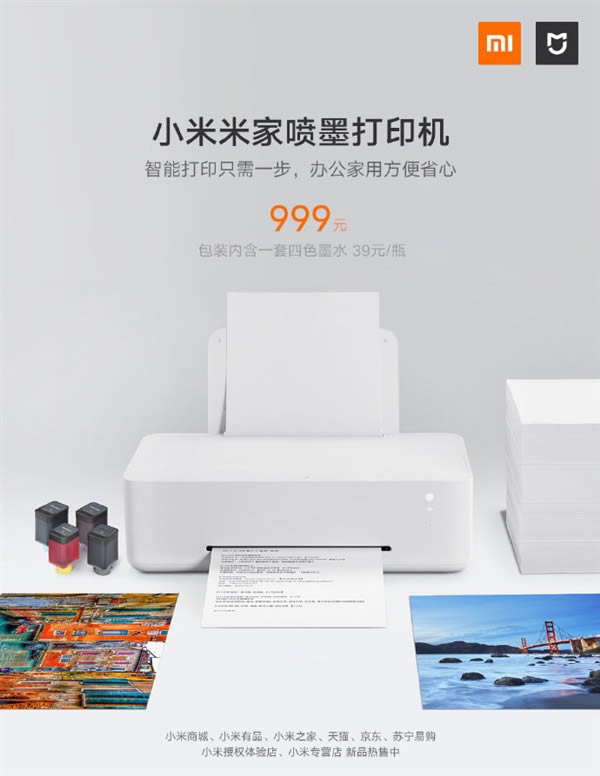 Xiaomi เปิดตัวเครื่องพิมพ์ MIJIA Inkjet ที่มีดีไซน์เรียบง่าย ขนาดกะทัดรัด และวางจำหน่ายในราคาเพียง 999 หยวน หรือราว 4,300 บาท มีจุดเด่นที่รองรับการเชื่อมต่อ Wi-Fi จึงสามารถควบคุมการใช้งานผ่านแอพพลิเคชั่น MIJIA บนสมาร์ทโฟนได้