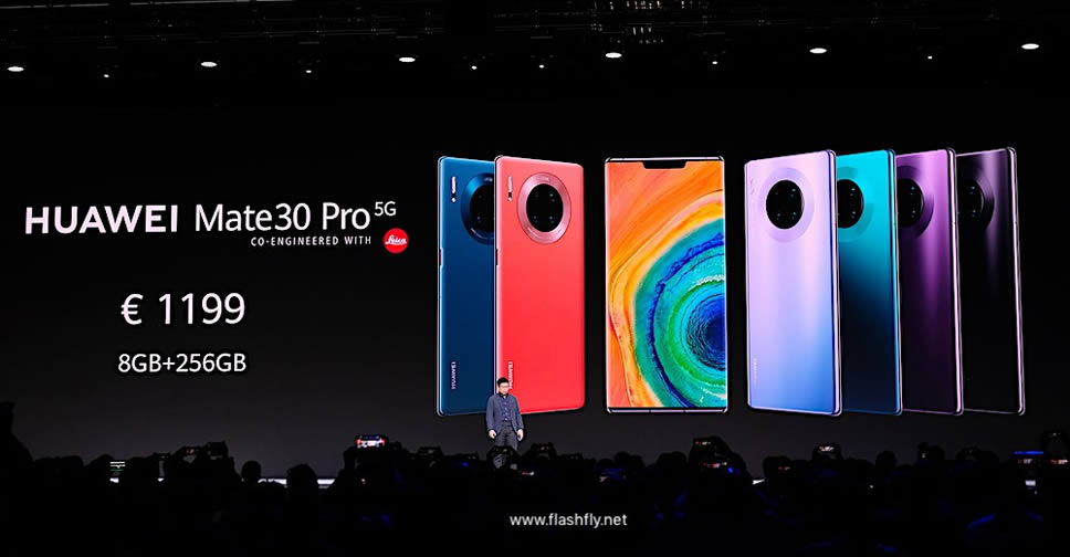 - Huawei Mate 30 Pro 5G (RAM 8GB + ROM 256GB) ราคา 1,199 ยูโร หรือราว 40,900 บาท