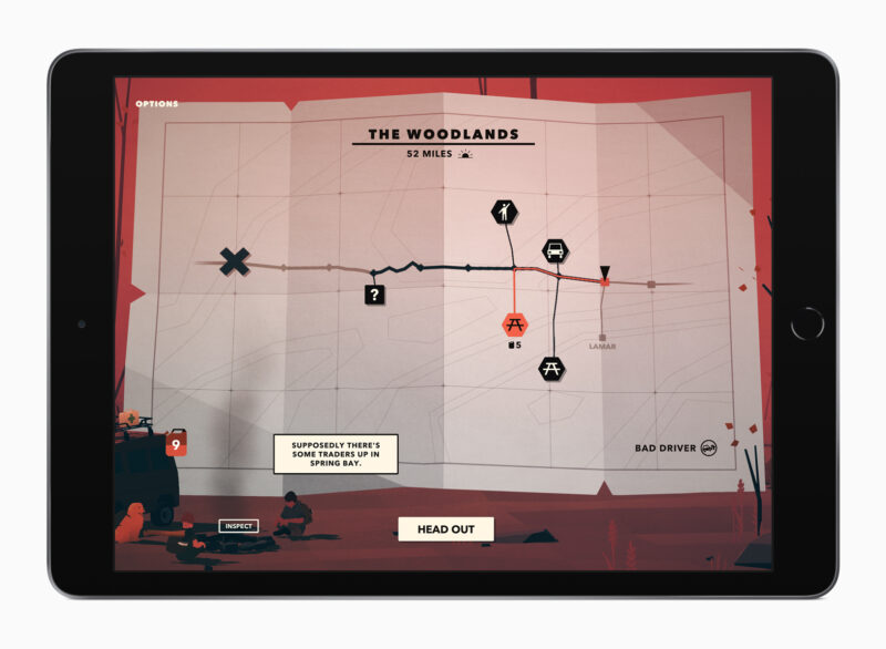 “Overland” จาก Finji เป็นเกมแนวหลังวันสิ้นโลกที่ผู้เล่นจะต้องออกผจญภัยโดยรถยนต์ที่ร่วมกันสร้างโดย Adam และ Bekan Saltsman วัย 37 และ 38 ปี คู่สามีภรรยาที่อาศัยอยู่กับลูกชาย 2 คนในเมืองแกรนด์แรพิดส์ รัฐมิชิแกนได้ออกแบบเกม “Overland” โดยนำบอร์ดเกมแบบคลาสสิก หนังสือ และภาพยนตร์เรื่องโปรดมาผสมผสานกัน ผู้เล่นจะต้องขับรถข้ามสหรัฐอเมริกาที่กำลังเสื่อมโทรมไปทางทิศตะวันตก