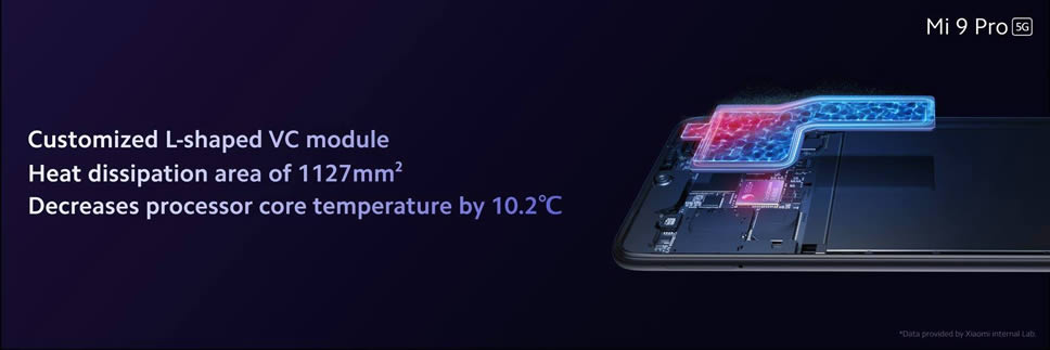 Xiaomi Mi 9 Pro 5G มาพร้อมระบบปฏิบัติการเวอร์ชั่นล่าสุด MIUI 11 ใช้ชิปประมวลผล Qualcomm Snapdragon 855+ พร้อม Snapdragon X50 ชิปโมเด็ม 5G มีระบบระบายความร้อนที่ช่วยลดอุณหภูมิของซีพียูได้ 10.2 องศาเซลเซียส และสามารถทำคะแนนจาก AnTuTu ได้สูงถึง 480,830 คะแนน