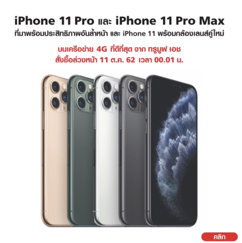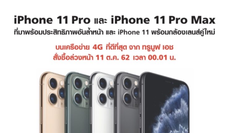 ในที่สุด Truemove H ก็ได้ประกาศเปิดจอง iPhone 11,iPhone 11 Pro และ iPhone 11 Pro Max ออกมาอย่างเป็นทางการแล้ว หลังจากที่ AIS และ dtac ก็ได้ประกาศออกมาก่อนหน้าซึ่งก็คือวันศุกร์ที่ 11 ตุลาคม 2652 โดยจะเริ่มตั้งแต่เวลา 0.01 น.เป็นต้นไป