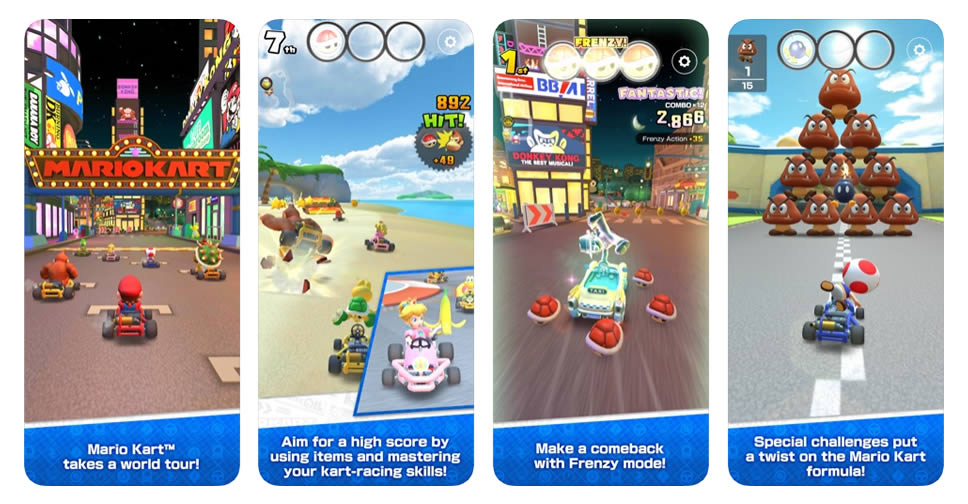 เกม Mario Kart Tour ได้เปิดทดลองระบบและอนุญาตให้ผู้ใช้งานสมัครเข้าไปทดสอบเกมได้เมื่อช่วงเดือนพฤษภาคมที่ผ่านมา และ พบว่ามีรูปแบบการเล่นคล้ายกับเวอร์ชั่นคอนโซล แต่เปลี่ยนวิธีการควบคุม เพื่อให้เหมาะสมกับอุปกรณ์ที่ใช้จอแสดงผลระบบสัมผัส ผู้เล่นสามารถควบคุมรถด้วยการสัมผัสหน้าจอ หรือ ใช้การเอียงตัวเครื่อง (Motion Control) ส่วนตัวรถจะถูกเร่งความเร็วให้อัตโนมัติ มาพร้อมนักแข่งรถที่คุ้นเคยอย่าง Mario, Luigi, Toad, Shy Guy, Waluigi, Peach, Toadette และสามารถปลดล็อคตัวละครอื่นๆ เพิ่มเติมได้