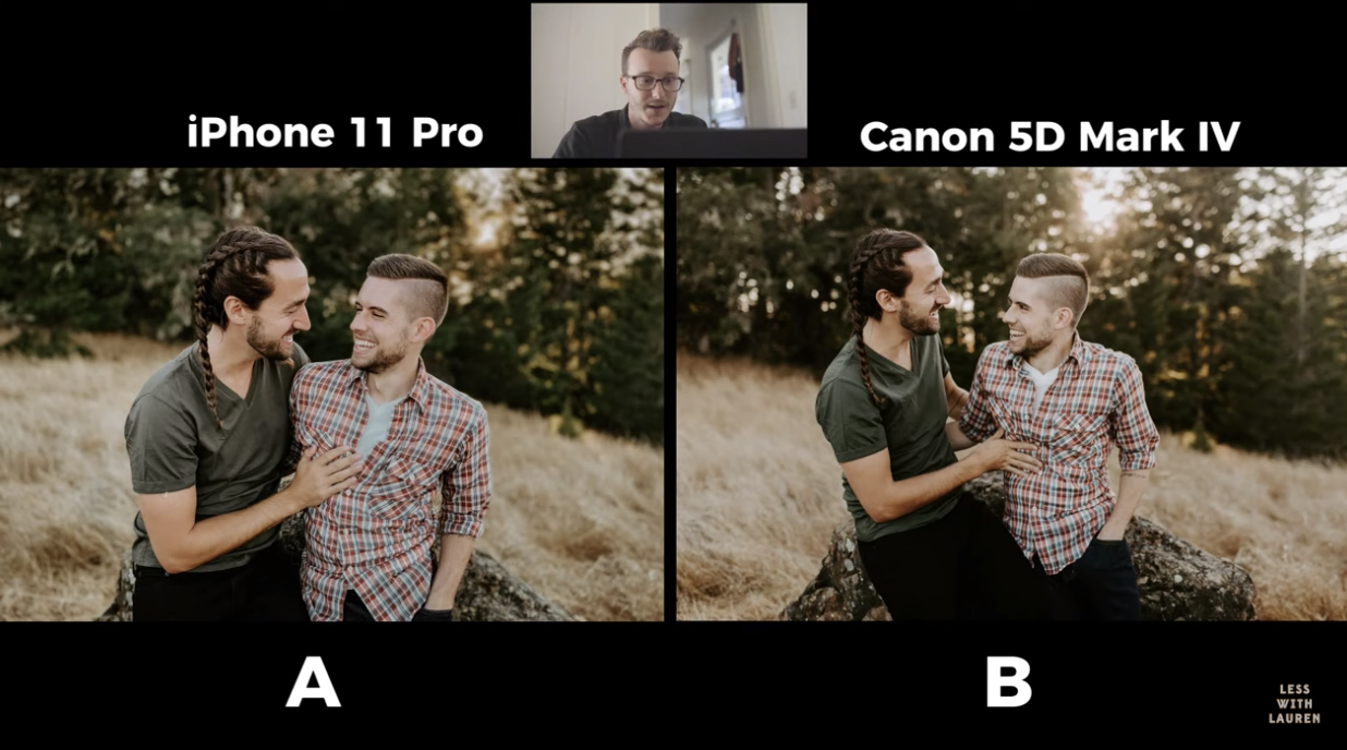 Jamie และ Lauren Eichar ช่างภาพงานแต่งงานระดับมืออาชีพในซานฟรานซิสโก ได้นำ iPhone 11 Pro ออกไปถ่ายภาพในแนวโรแมนติกอย่างที่พวกเขาถนัด พร้อมนำกล้อง Canon 5D Mark IV ไปถ่ายภาพเพื่อนำมาเปรียบเทียบให้ชมแบบช็อตต่อช็อต