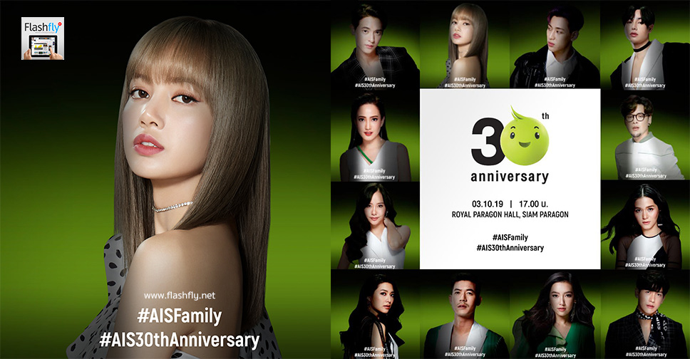 เอไอเอส ฉลองครบ 30 ปี จัดงานแถลงข่าวและขอบคุณลูกค้าสุดยิ่งใหญ่ ในวันพฤ.ที่ 3 ตุลาคม 2562 เวลา 17.00 น. ณ รอยัล พารากอน ฮอลล์ ชั้น 5 สยามพารากอน พบกับการรวมตัวของ 12 พรีเซนเตอร์สุดฮอต ได้แก่ เจมส์ จิรายุ, เป็ก ผลิตโชค, ทอม อิศรา, เต้ย จรินทร์พร, แต้ว ณฐพร, มิว นิษฐา, พุฒ พุฒิชัย, วี วิโอเลต, เวียร์ ศุกลวัฒน์, เบลล่า ราณี, แบมแบม กันต์พิมุกต์, ลิซ่า ลลิษา ที่จะมามอบความสุขและความสนุกครั้งยิ่งใหญ่ ที่ทำให้ทุกคนอุ่นใจยิ่งกว่าเดิม