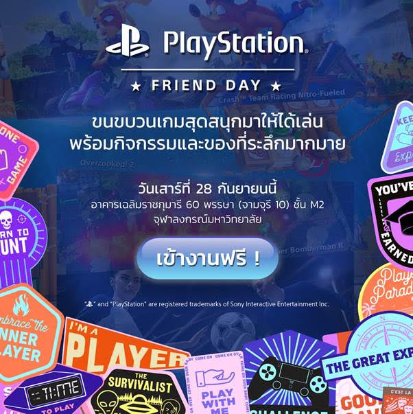 ลงทะเบียนเข้าร่วมงานได้ที่นี่ https://playstn.asia/PSFriendDay_Registration