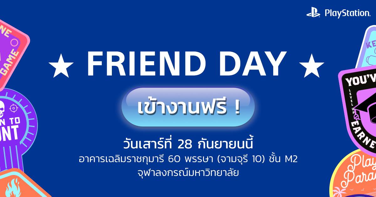 โซนี่ อินเตอร์แอคทีฟ เอนเตอร์เทนเมนต์ ประกาศจัดงานอีเวนท์ “PlayStation Friend Day” ในวันเสาร์ที่ 28 กันยายน ศกนี้ ให้คุณได้เต็มอิ่มไปกับกิจกรรมที่จัดขึ้นเพื่อชุมชนของคนที่รักการเล่นเกมโดยเฉพาะ