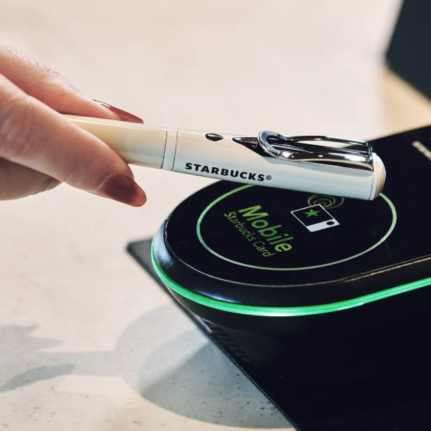 ร้านกาแฟ Starbucks ในประเทศญี่ปุ่น วางจำหน่ายปากกา Starbucks Touch The Pen ที่ดูดีมีสไตล์ สามารถเขียนได้จริงเหมือนปากกาทั่วไป แต่ที่พิเศษคือ สามารถใช้ชำระเงินภายในร้านได้เหมือนกับบัตร Suica