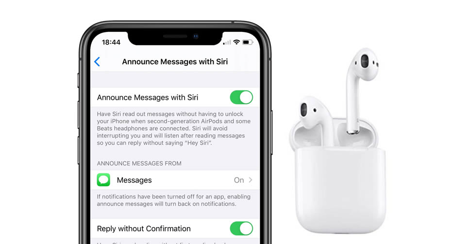 Announce Messages with Siri หรือ การอ่านข้อความโดย Siri ช่วยให้ผู้ใช้งาน ขอให้ Siri อ่านการแจ้งเตือนที่เข้ามาจากแอพส่งข้อความต่างๆ ให้ผู้ใช้งานฟังผ่านทาง AirPods รุ่นที่ 2 โดยไม่ต้องหยิบ iPhone ขึ้นมาอ่านเอง
