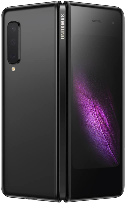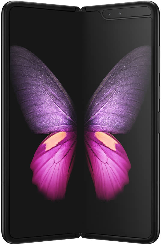 Samsung Galaxy Fold มาพร้อมจอแสดงผลแบบพับได้ Infinity Flex Display หน้าจอ Dynamic AMOLED ขนาด 7.3 นิ้ว ผลิตด้วยวัสดุพอลิเมอร์ที่พัฒนาขึ้นมาใหม่ ให้มีหลายชั้นที่บางและยังคงมีความยืดหยุ่น ซึ่งเป็นหน้าจอของสมาร์ทโฟนในตระกูล Galaxy ที่ใหญ่ที่สุดเท่าที่เคยมีมา และยังมีจอแสดงผลด้านนอก Super AMOLED ขนาด 4.6 นิ้ว