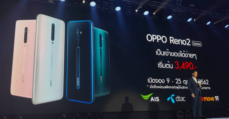 พิเศษ!! จับจอง OPPO Reno2 Series ผ่านผู้ให้บริการฯ AIS, Dtac, TrueMove H ในระหว่างวันที่ 9 – 25 ตุลาคม 2562 สามารถเป็นเจ้าของได้ในราคาเริ่มต้นเพียง 3,490 บาท เมื่อซื้อพร้อมสมัครแพ็กเกจรายเดือน ตามเงื่อนไขที่บริษัทฯ กำหนด