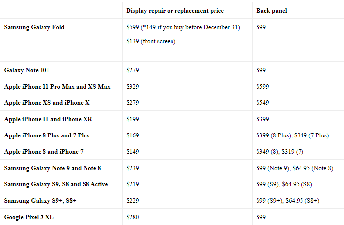 สำหรับจอแสดงผลด้านนอกของ Galaxy Fold มีค่าเปลี่ยน 139 ดอลล่าร์สหรัฐ หรือราว 4,220 บาท และค่าเปลี่ยนแผงหลัง 99 ดอลล่าร์สหรัฐ หรือราว 3,010 บาท