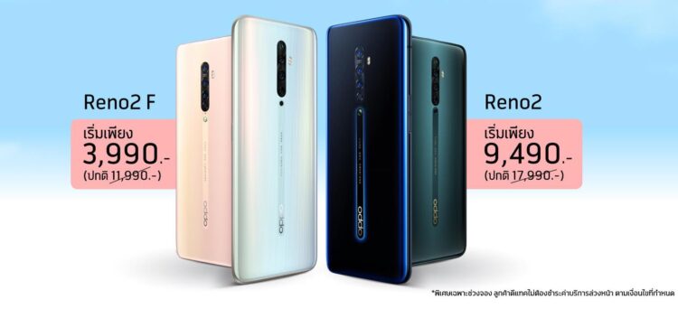OPPO ผู้นำตลาดสมาร์ทโฟนไทย เปิดตัวสมาร์ทโฟนรุ่นใหม่ OPPO Reno2 Series พร้อมสโลแกน “4 กล้องหลัง ชัดทุกระยะ สวยทุกมุมมอง” โดยเปิดตัว 2 รุ่นด้วยกัน คือ OPPO Reno2 F สุดยอดสมาร์ทโฟนในการถ่ายภาพพอร์ตเทรตและเซลฟี่ ที่จะทำให้ได้ภาพถ่ายที่สวยทุกมุมมอง โดยมาในราคา 11,990 บาท และ OPPO Reno2 สุดยอดสมาร์ทโฟนในการถ่ายวิดีโอ ที่จะทำให้ภาพถ่ายคมชัดในทุกระยะการถ่ายภาพ ซึ่งมาในราคา 17,990 บาท