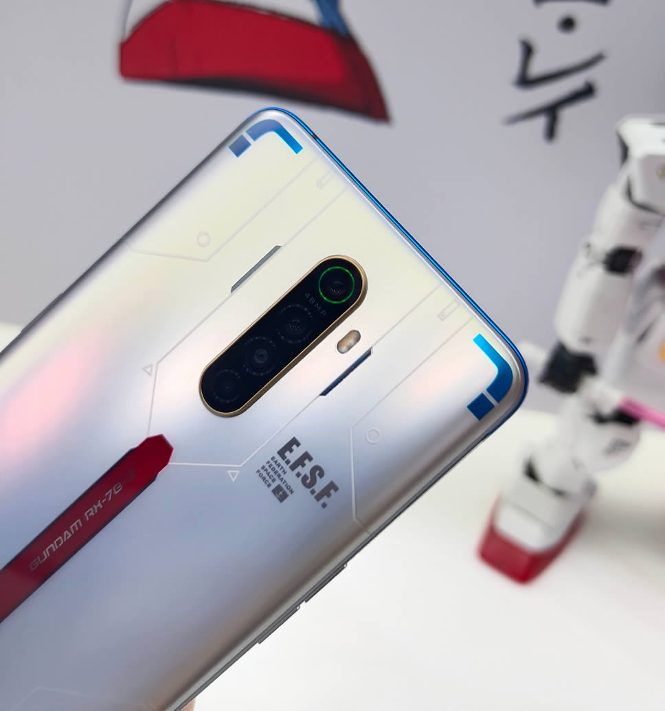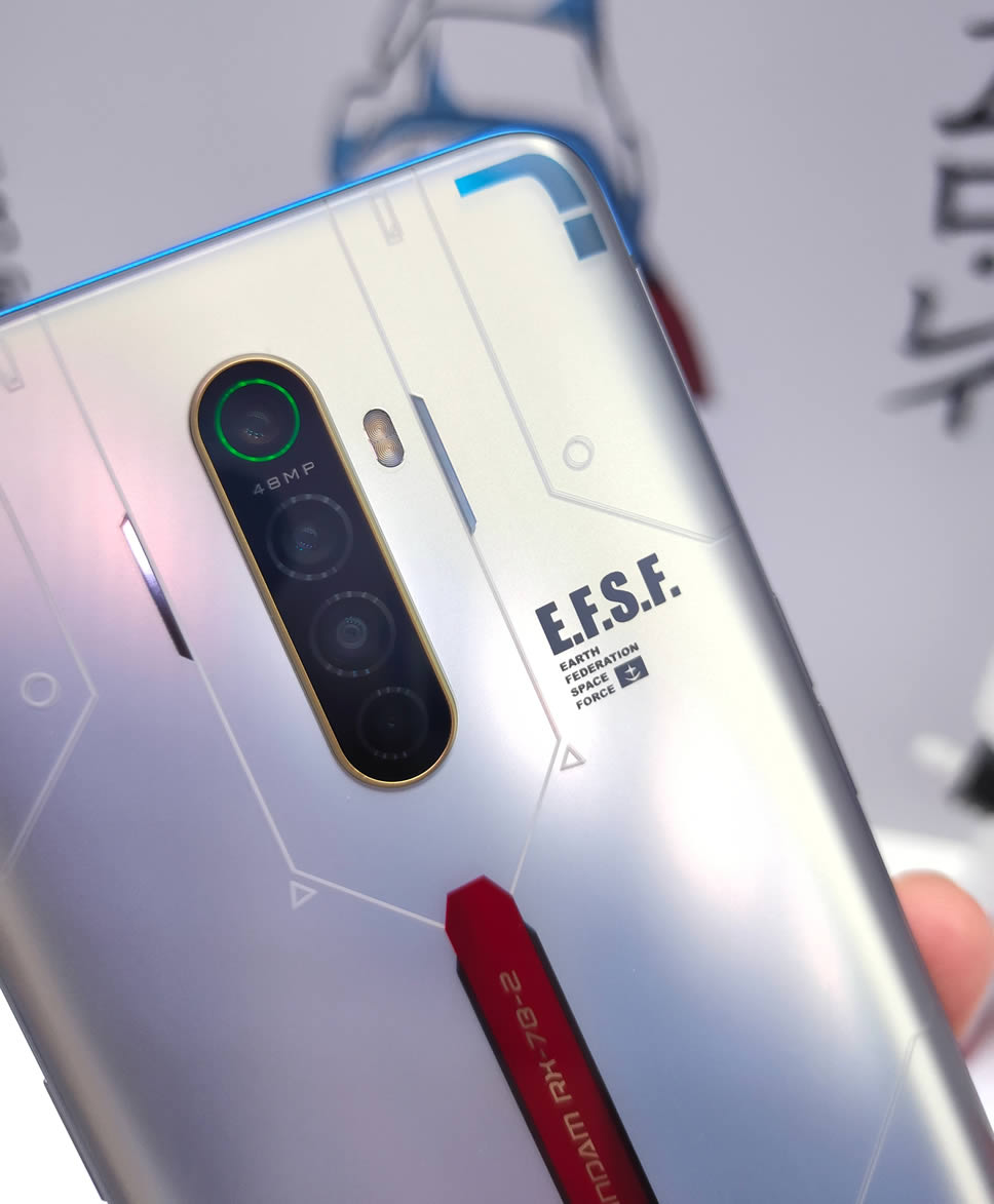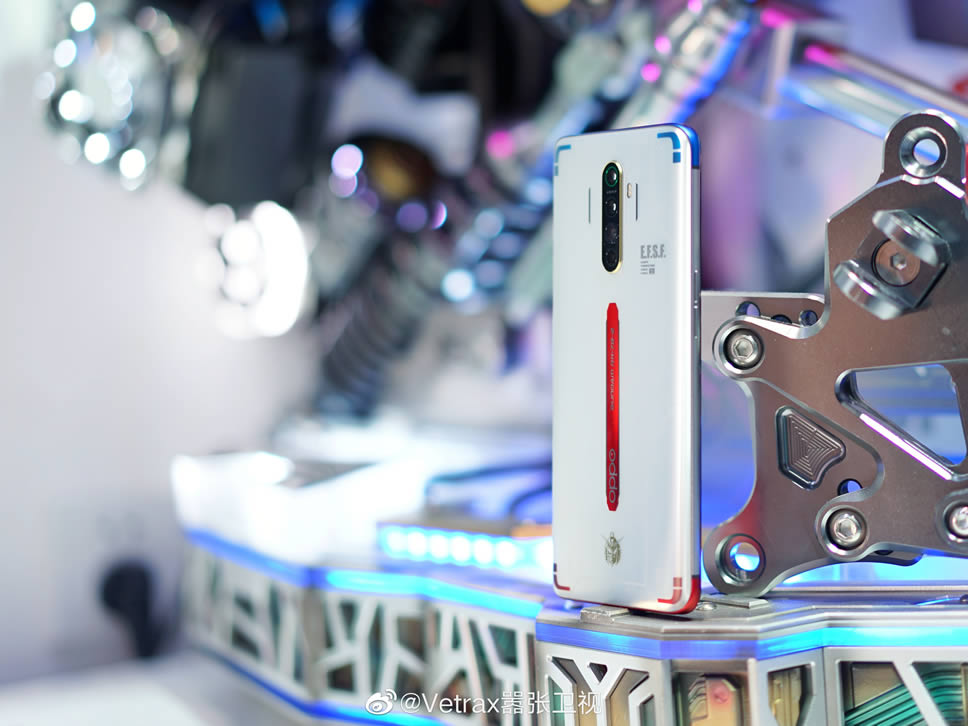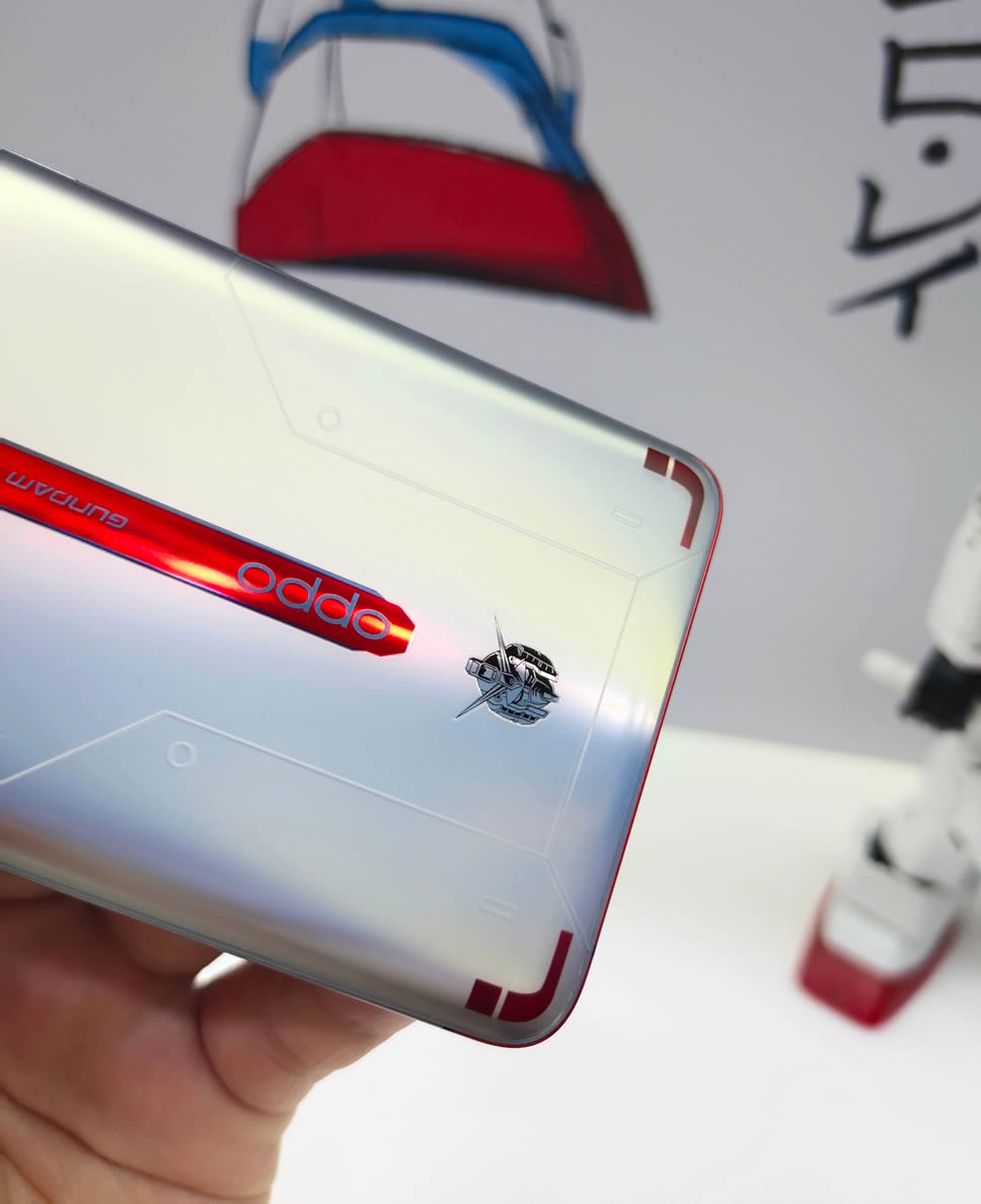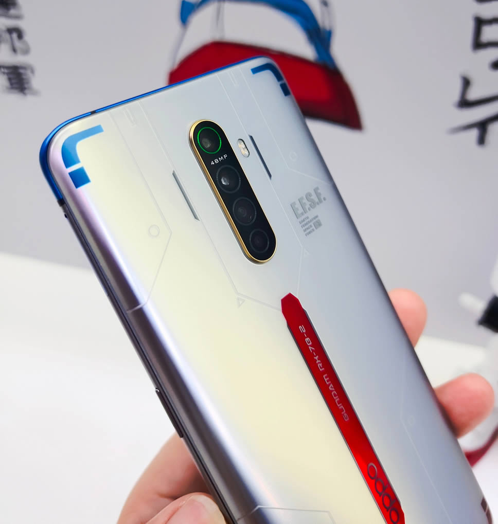 OPPO Reno Ace Gundam 40th Anniversary Limited Edition มีสเปกเหมือนกับ Reno Ace รุ่นปกติ มาพร้อมจอแสดงผล AMOLED ขนาด 6.5 นิ้ว ให้อัตราการรีเฟรข 90Hz ใช้ชิป Qualcomm Snapdragon 855 Plus ความจำ RAM 8GB จับคู่กับ ROM 256GB กล้องหลัง 4 ตัว 48MP Quad Camera และรองรับเทคโนโลยีชาร์จเร็ว 65W SuperVOOC 2.0