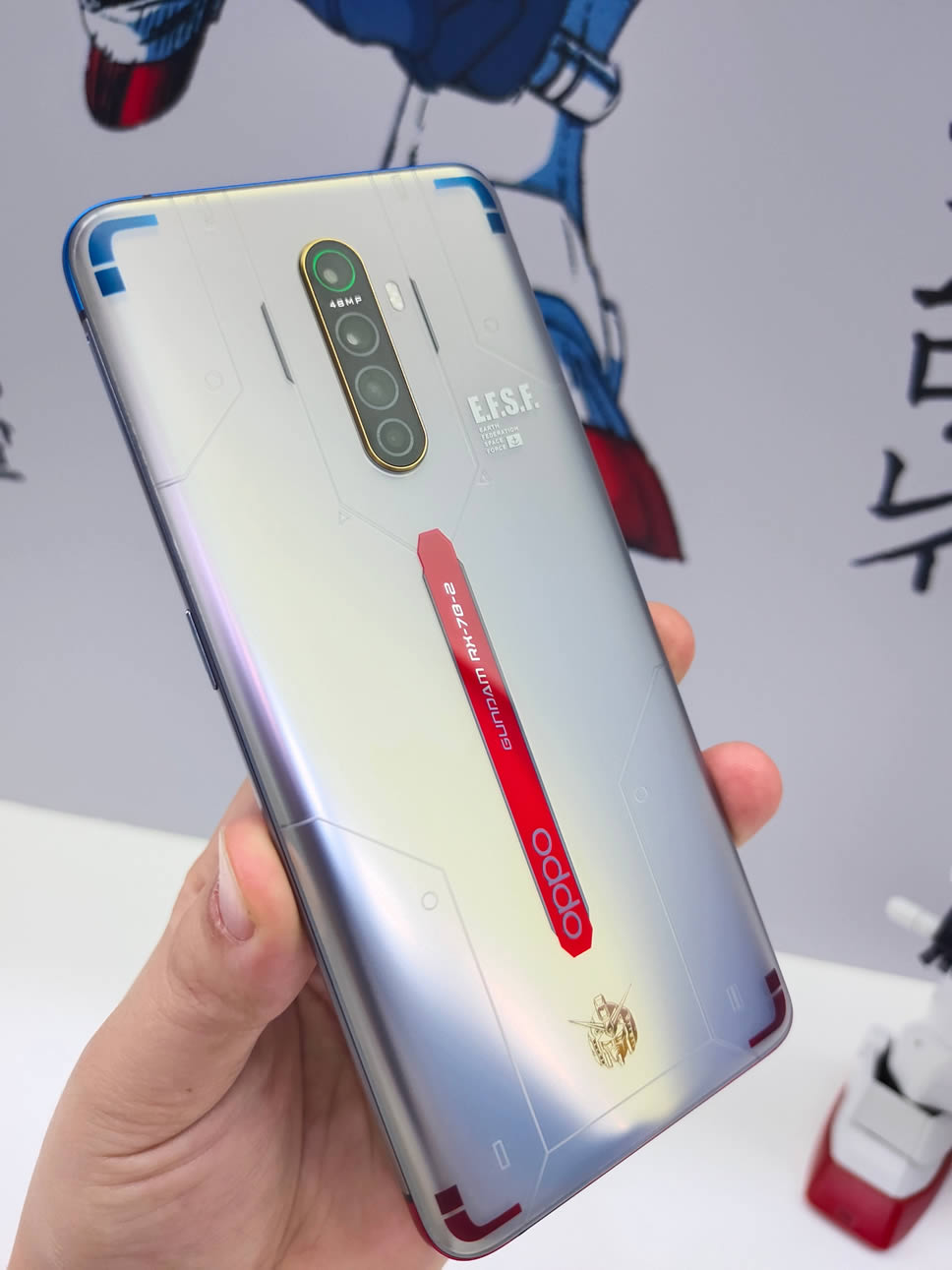 OPPO Reno Ace Gundam 40th Anniversary Limited Edition มีพื้นฐานมาจากสมาร์ทโฟนเรือธง Reno Ace แต่ดีไซน์ภายนอกถูกปรับแต่งให้เป็นธีมของหุ่นยนต์ Gundam RX-78-2 และผลิตออกมาจำนวนจำกัดเพียง 30,000 เครื่องเท่านั้น