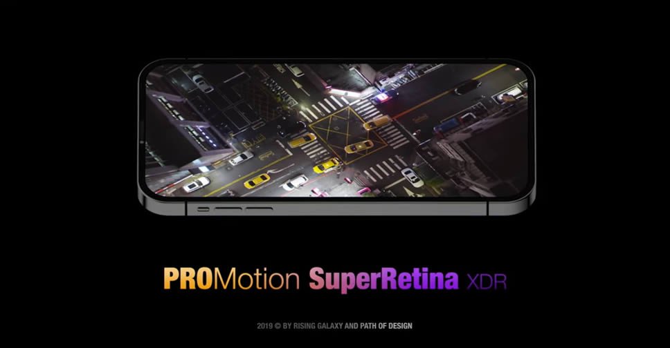 คอนเซ็ปต์ iPhone 12 Pro มาพร้อมจอแสดงผล ProMotion Display Super Retina XDR ที่ให้อัตราการรีเฟรช 120Hz ติดตั้งกล้องหลังมาให้ 4 ตัว โดย 3 ตัวแรกเป็นกล้องหลัก, กล้องเทเลโฟโต้, กล้องมุมกว้างพิเศษ ส่วนกล้องตัวที่ 4 เป็นเซ็นเซอร์ 3D Capture Grid Projector
