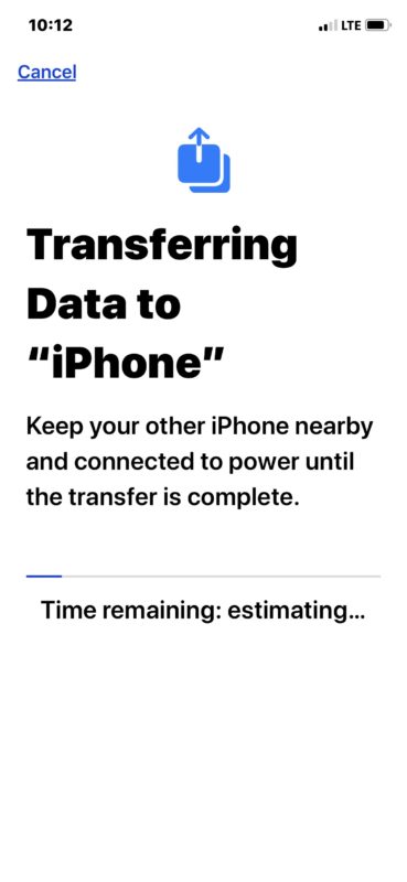 7. หน้าจอ Transferring Data จะปรากฏขึ้นบนจอแสดงผลของ iPhone ทั้ง 2 เครื่อง และตอนนี้ให้รอจนกระบวนการถ่ายโอนเสร็จสิ้น