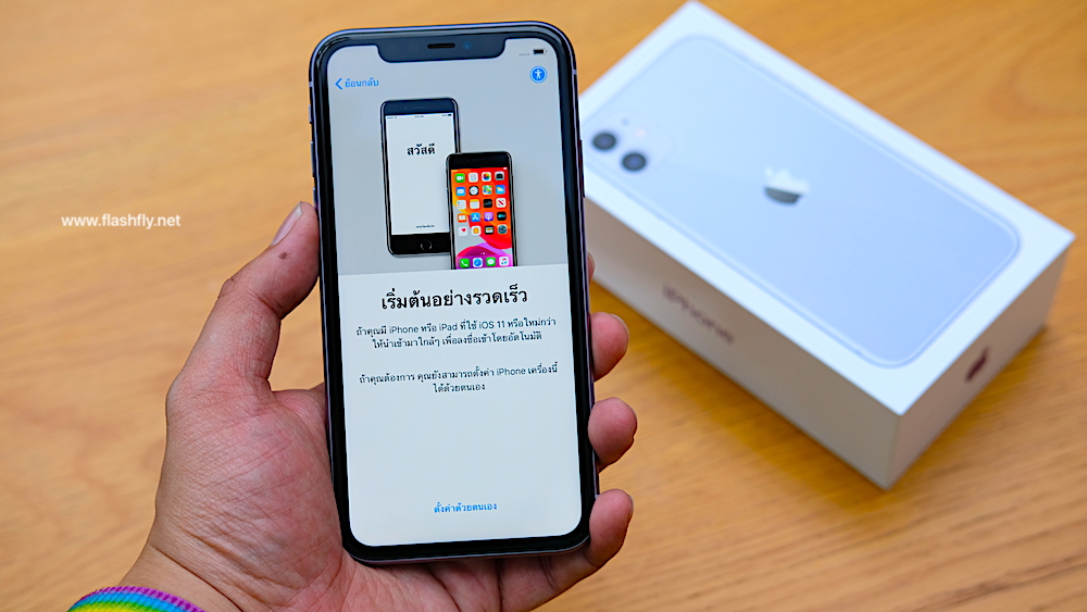 หลังจากที่ทีมงาน @flashfly ทำได้การรีวิวแกะกล่อง iPhone 11 Pro Max สีเขียว Midnight Green ความจุ 512GB เครื่องศูนย์ประเทศไทยให้ได้เห็นกันไปก่อนหน้านี้แล้ว มาคราวนี้ก็ถึงคิวของการแกะกล่อง iPhone 11 กันบ้าง