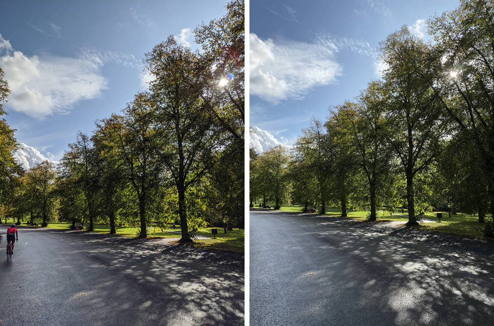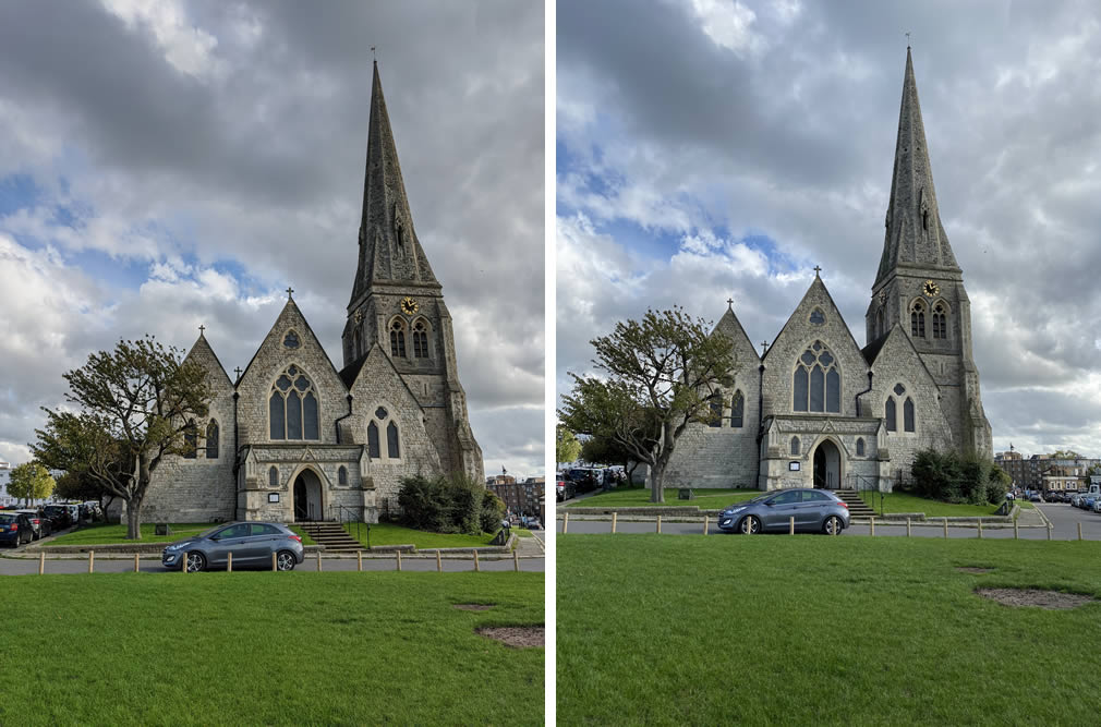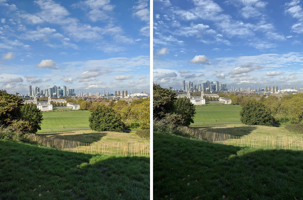 ภาพถ่ายจาก Pixel 4 (ซ้าย) vs iPhone 11 Pro (ขวา)