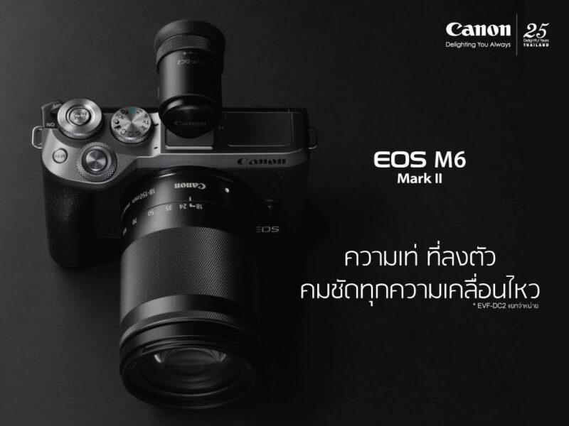 แคนนอน เปิดตัว Canon EOS M6 Mark II กล้องมิเรอร์เลสเปลี่ยนเลนส์ได้รุ่นล่าสุดในตระกูล EOS M เพิ่มประสิทธิภาพในการล็อคและติดตามออโต้โฟกัสที่รวดเร็ว เพื่อการจับภาพได้แม้ในช่วงเวลาที่คาดไม่ถึง มาพร้อมขนาดกะทัดรัดและน้ำหนักเบา อัดแน่นด้วยเซนเซอร์ APS-C CMOS ขนาด 32.5 ล้านพิกเซล และความสามารถถ่ายภาพต่อเนื่องได้สูงถึง 30 fps ในโหมด RAW burst ให้ผู้ใช้มั่นใจว่าสามารถจับภาพที่คมชัด ไม่พลาดทุกช็อตสำคัญ อีกทั้งผสมผสานระบบป้องกันภาพสั่นไหว แบบ Dual Sensing IS ช่วยลดการสั่น แม้ผู้ใช้จะเคลื่อนไหวในระหว่างการบันทึกวีดีโอ พร้อมด้วยความสามารถในการบันทึกวีดีโอ 4K แบบ uncropped ให้การถ่ายวีดีโอเป็นไปได้ในมุมมองที่กว้างขึ้น