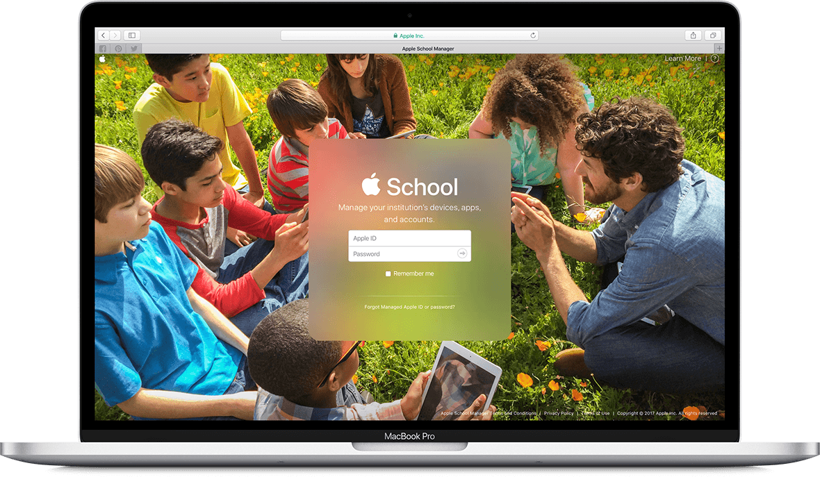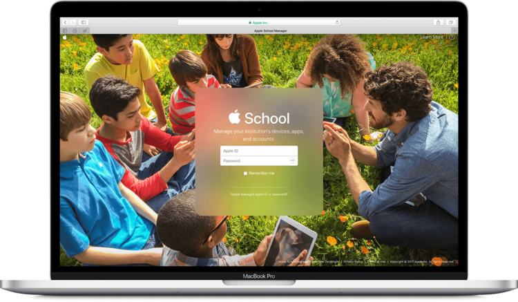 Apple School Manager เป็นพอร์ทัลเว็บที่ช่วยให้เจ้าหน้าที่ไอทีของโรงเรียนเปิดใช้งาน iPad และ Mac ในระบบไอทีของโรงเรียนได้อย่างง่ายดาย ช่วยให้ผู้ใช้เข้าถึงบริการของ Apple, ตั้งค่าอุปกรณ์, เข้าถึงแอพและหนังสือ และเสริมศักยภาพครูผู้สอนด้วยเครื่องมือที่เสริมสร้างประสบการณ์ในการเรียน อีกทั้งยังสามารถซื้อแอพพลิเคชั่นได้ในราคาลด 50% หากซื้อสำหรับการใช้งานบนอุปกรณ์จำนวนมากกว่า 50 เครื่อง