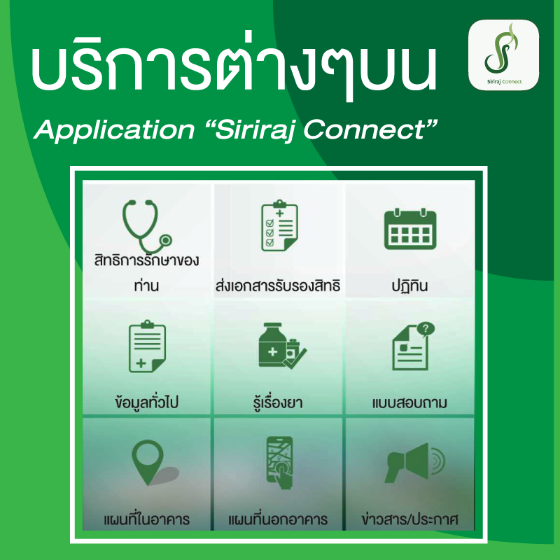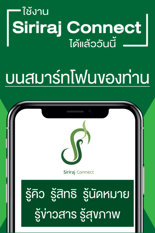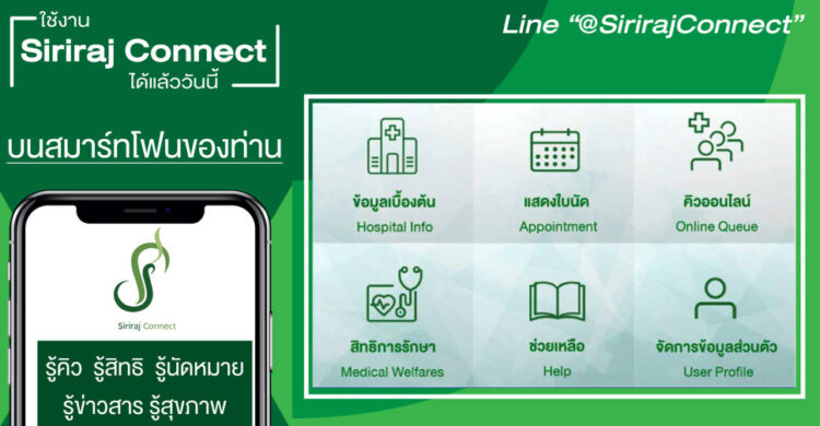 กว่า 6 เดือนมาแล้วที่ผู้ป่วยที่มารับการรักษาพยาบาลที่โรงพยาบาลศิริราช สามารถสัมผัส ประสบการณ์การรักษาที่ทันสมัย สะดวก และรวดเร็ว ผ่านแอปพลิเคชัน Siriraj Connect สำหรับผู้ใช้บริการที่คลินิกอายุรศาสตร์ โดยเริ่มตั้งแต่การ ยืนยันคิวตรวจในผู้ป่วยที่มีนัด จากบ้านได้ เหมือนการเช็กอินออนไลน์ของสนามบิน ผู้ป่วยไม่จำเป็นต้องมารอโรงพยาบาลตั้งแต่เช้าตรู่ แต่สามารถยืนยันคิวผ่านแอปพลิเคชันได้จากที่บ้าน ระบบจะแจ้งลำดับคิวตรวจและเวลาที่จะได้พบแพทย์ และสามารถอัพเดทคิวแบบเรียลไทม์ แล้วจึงเดินทางมาที่ห้องตรวจเมื่อถึงคิวตรวจ เมื่อรับการรักษาพยาบาลเสร็จ ก็สามารถรับใบนัดออนไลน์และชำระค่าใช้จ่ายผ่าน QR CODE ได้ง่าย ๆ เหมือนกับการซื้อสินค้าออนไลน์ มีระบบสแกนคิวอาร์โค้ดข้อมูลรายการยา ข้อมูลรายการยาที่แพทย์สั่ง ก็จะเข้าไปเก็บในโทรศัพท์มือถือของท่าน