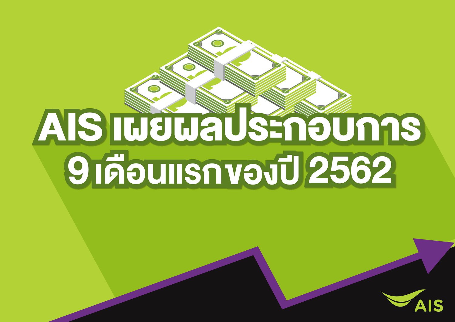 “ส่วนผลประกอบการ ไตรมาส 3 ปี 2562 เอไอเอส ยังคงมีรายได้และกำไรเติบโตต่อเนื่อง โดยมีกำไรสุทธิอยู่ที่ 8,679 ล้านบาท เพิ่มขึ้น 28% เมื่อเทียบกับช่วงเดียวกันของปีก่อน และเพิ่มขึ้น 12% เมื่อเทียบกับไตรมาส 2 ปี 2562นับเป็นการเติบโตต่อเนื่อง 5 ไตรมาส ติดต่อกัน”