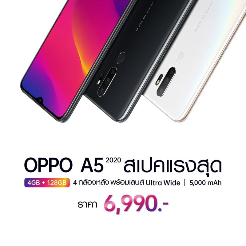 มาแล้ว! OPPO A5 2020 สเปคแรงสุด กล้องหลัง 4 เลนส์ แบตอึด 5,000 mAh ในราคาเพียง 4,999 บาท พร้อมวางจำหน่าย 28 กันยายนนี้