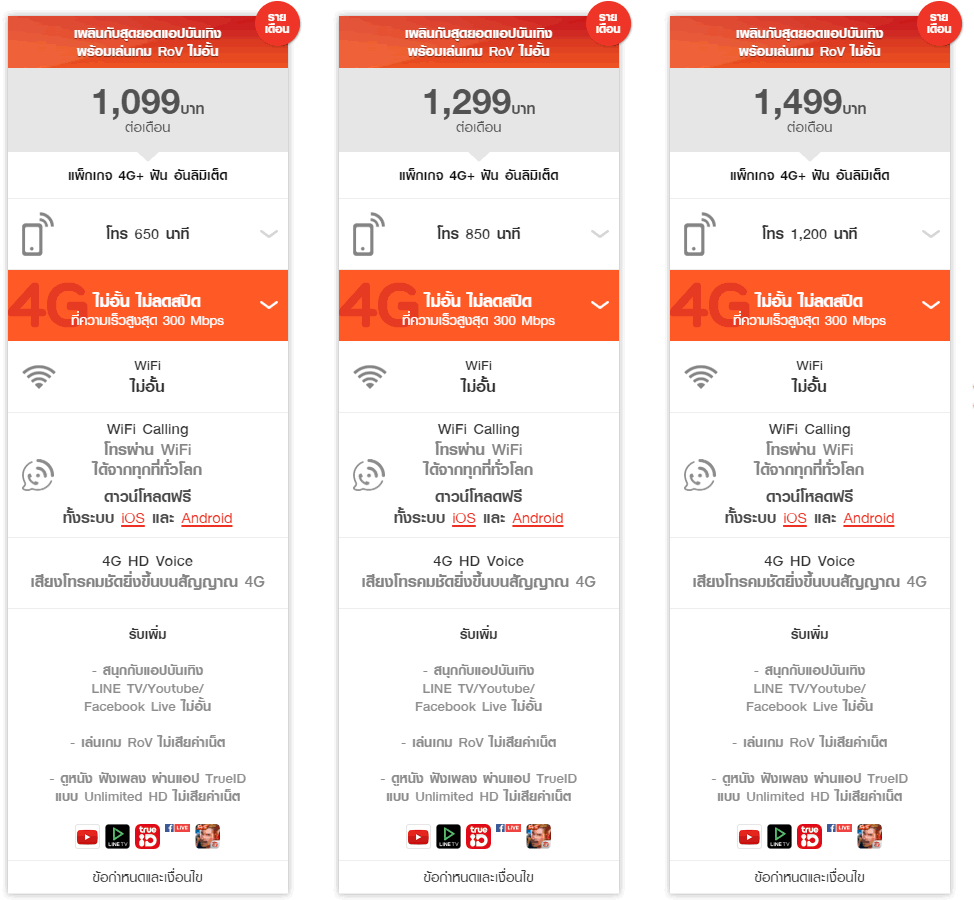 iPhone 7 จาก TrueMove H ราคาพิเศษ 4,990 บาท (ย้ายค่ายเบอร์เดิม ลดเพิ่มอีก 1,000 บาท) จะต้องซื้อพร้อมสมัครแพ็กเกจรายเดือน 1,099 บาท ขึ้นไป ทำสัญญาใช้บริการนาน 12 เดือน โดยแพ็กเกจรายเดือนของ TrueMove H มาพร้อม Wi-Fi ฟรีไม่อั้น, 4G HD Voice, เล่นเกม ROV ไม่เสียค่าเน็ต, รับชมความบันเทิงผ่าน True ID ไม่เสียค่าเน็ต และ ใช้แอพ LINE TV / YouTube / Facebook Live ไม่อั้น