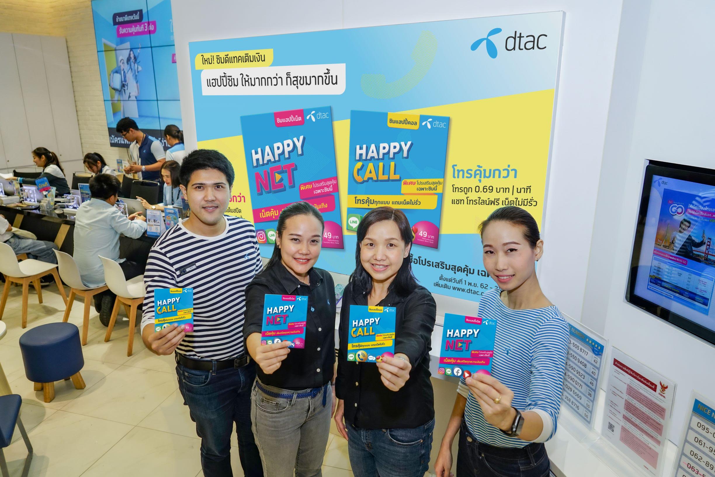 ดีแทคเปิดตัว “ซิมแฮปปี้เน็ต แฮปปี้คอล” ซิมระบบเติมเงินที่มาด้วยแนวคิด แบบพลิกตลาดระบบเติมเงินประเทศไทยที่ในตอนนี้มีซิมมากมายหลายชนิด แต่ละชนิดแบ่งสิทธิประโยชน์ยิบย่อยต่างกันจนสับสน และส่วนใหญ่ออกมาเพื่อเอาใจกลุ่มลูกค้าเน้นเล่นเน็ตซึ่งเป็นลูกค้ากลุ่มหลักของธุรกิจโทรคมนาคมในปัจจุบัน
