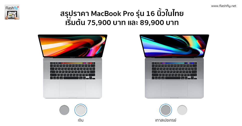 Apple เปิดตัว MacBook Pro รุ่น 16 นิ้ว อย่างทางการ พร้อมประกาศราคาในประเทศไทยแล้ว โดยมีราคาเริ่มต้น 75,900 บาท ผลิตออกมา 2 สี ได้แก่ สีเทาสเปซเกรย์ และ สีเงิน