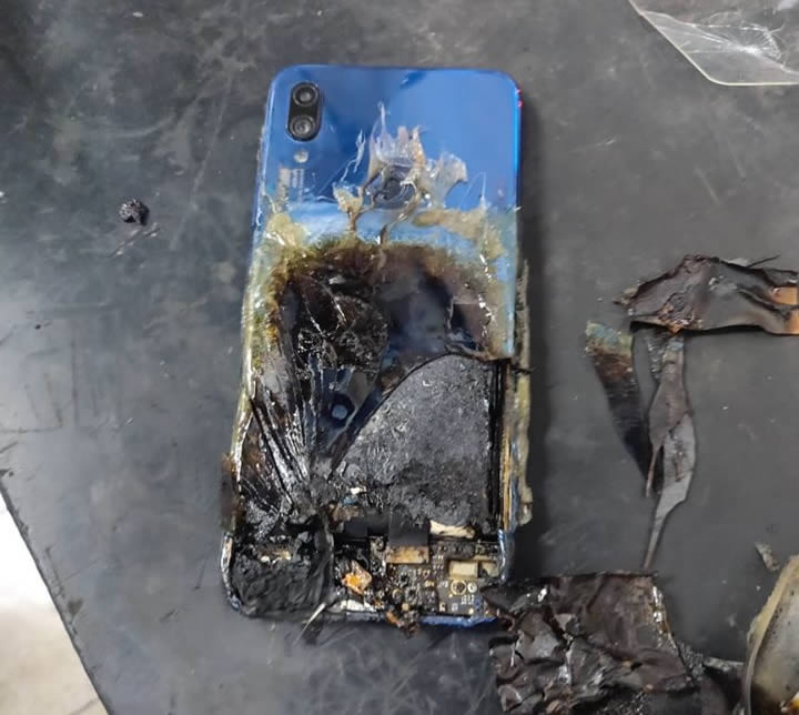 Chavhan Ishwar เล่าให้ฟังว่า Redmi Note 7S ของเขาลุกไหม้ขึ้นมาเอง ขณะวางอยู่บนโต๊ะ ทั้งที่ไม่ได้ชาร์จแบตเตอรี่หรือใช้งานอย่างผิดปกติ การลุกไหม้ได้สร้างความเสียหายอย่างหนักจนเคสที่สวมอยู่หลอมละลาย และต้นเหตุการไหม้ในครั้งนี้ก็ชัดเจนว่ามาจากแบตเตอรี่