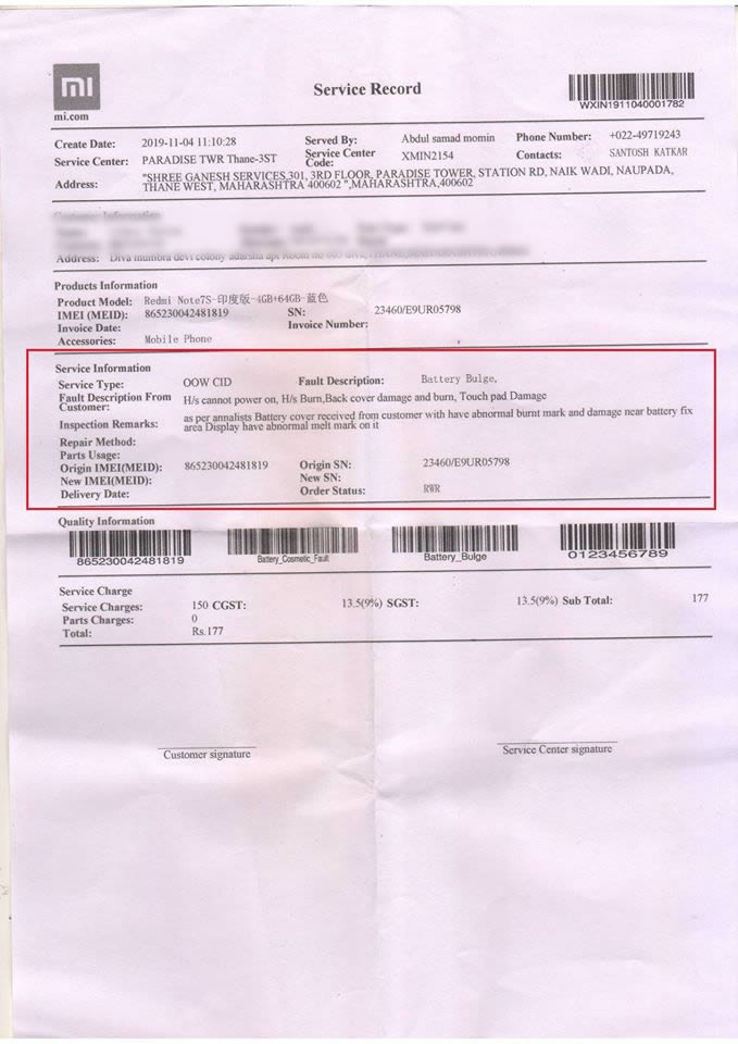 Chavhan Ishwar ได้ติดต่อไปยัง Xiaomi เพื่อแจ้งเหตุการณ์ที่เกิดขึ้น และต้องการให้ทาง Xiaomi ทดแทนสมาร์ทโฟนเครื่องใหม่ให้ แต่คำตอบที่ได้จาก Xiaomi ได้สร้างความผิดหวังให้กับเจ้าของสมาร์ทโฟน โดยบอกว่า กรณีของ Chavhan Ishwar ไม่ได้อยู่ภายใต้การรับประกันของแบตเตอรี่