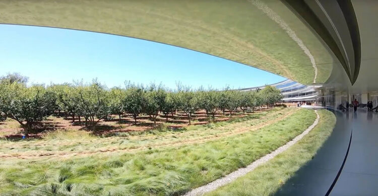 แต่สำหรับอาคารรูปทรงวงแหวนขนาดใหญ่ น้อยคนนักจะมีโอกาสได้เข้าไป เพราะเป็นพื้นที่ทำงานของพนักงาน Apple แต่ท้ายที่สุดก็มีคนพาเราเข้าไปชมบรรยากาศภายในผ่านคลิปวีดีโอความยาว 3 นาที